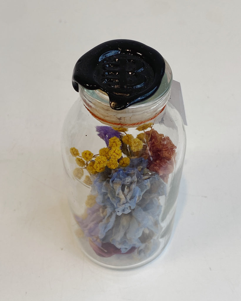 Kleine stoere en stevige medicinale fles, gevuld met droogbloemen. Alle bloemen worden in de Maison Botanique studio gedroogd.