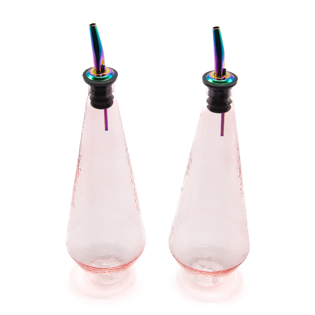 Voilà, je tafel styling is in één keer opgevrolijkt! De Claude Olie en azijn set combineert modern design met een vleugje regenboog.